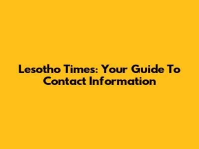 Lesotho Times: Your Guide To Contact Information