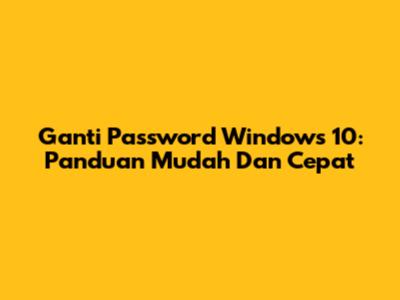 Ganti Password Windows 10: Panduan Mudah Dan Cepat