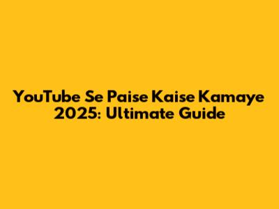 YouTube Se Paise Kaise Kamaye 2025: Ultimate Guide