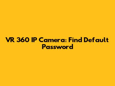 VR 360 IP Camera: Find Default Password