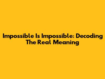 Impossible Is Impossible: Decoding The Real Meaning