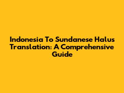 Indonesia To Sundanese Halus Translation: A Comprehensive Guide