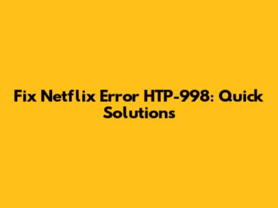Fix Netflix Error HTP-998: Quick Solutions