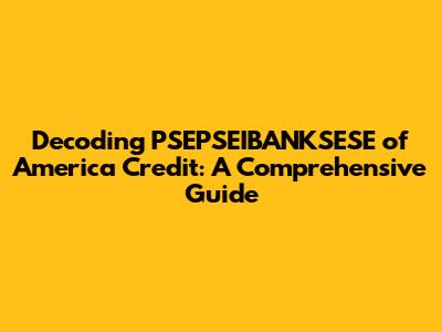 Decoding PSEPSEIBANKSESE of America Credit: A Comprehensive Guide