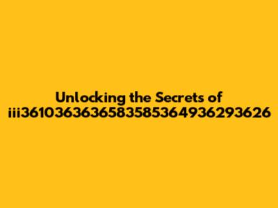 Alright, folks, let's dive deep into the enigmatic world of iii3610363636583585364936293626. What is it? Why should you care? Well, buckle up because we're about to unravel this mystery together. This article aims to provide a comprehensive understanding, breaking down the complexities and offering insights that you won’t find anywhere else. Whether you're a seasoned expert or just a curious newbie, there's something here for everyone.