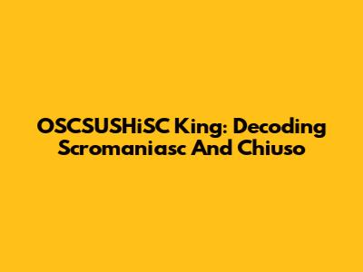 OSCSUSHiSC King: Decoding Scromaniasc And Chiuso