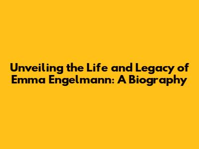 Unveiling The Life And Legacy Of Emma Engelmann: A Biography