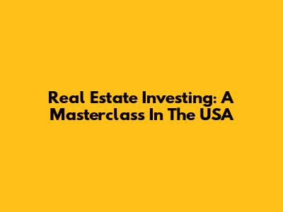 Real Estate Investing: A Masterclass In The USA