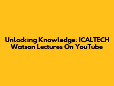 Unlocking Knowledge: ICALTECH Watson Lectures On YouTube
